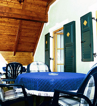 Die dazugehörige Terrasse bietet einen wunderschönen Ausblick auf die Weinberge.